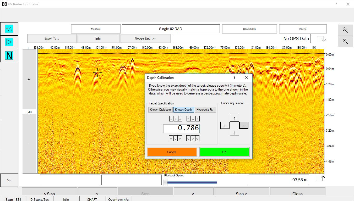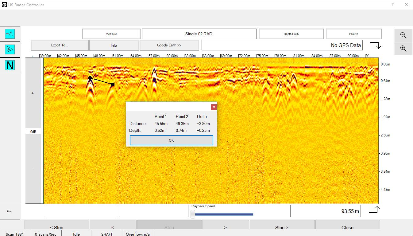 UC25雷達系統可在獲得探測數據后,對圖中不同目標體進行深度、距離差異的測算,有利于操作人員現場分析不同目標體的相對狀態。